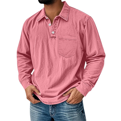 Per uomo Polo Polo da Golf Streetwear Affari Classico Manica Lunga Vintage Essenziale Tinta unica Tasca Autunno Inverno Interstagionale Vestibilità regolare Blu Rosa Nero Grigio Blu marino Viola Polo