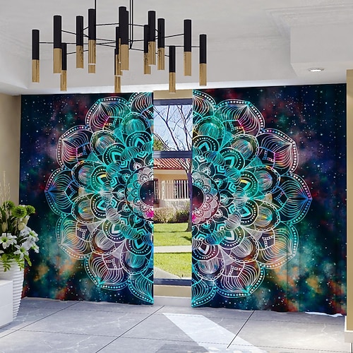2 tende con mandala geometrico artistico, pannelli per tende da finestra in poliestere con tasca per asta, tende con motivo astratto boho, lavabili in lavatrice, adatte per soggiorno, camera da letto,