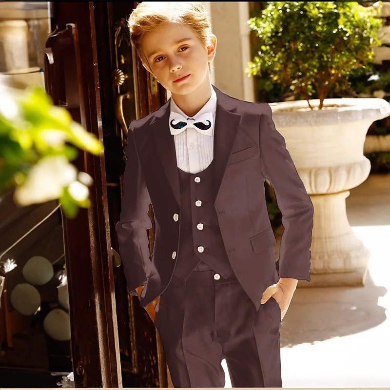 3 Pieces Ring Bearer Suit Boys' Kids Suit Blazer Vest Pants Boy's Formal Suit Casual Outdoor Party Fashion Cool Basic Solid Color Pocket Buttons Blue Black White Polyester