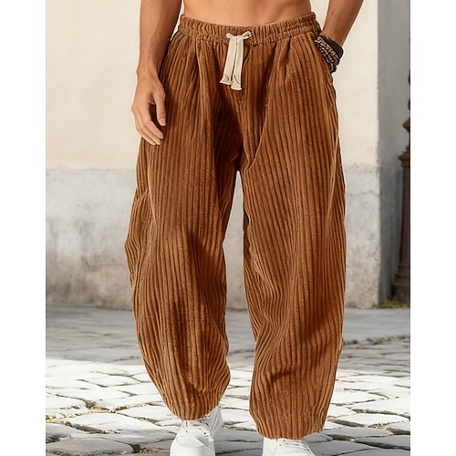 Herren Jogginghose mit weitem Bein Hose Cordhose Baggy-Hosen Freizeithose Kordelzug Elastischer Bund Einfach Gestreift Feuchtigkeitsableitend Atmungsaktiv Volle Länge Sport im Freien Lässig Täglich