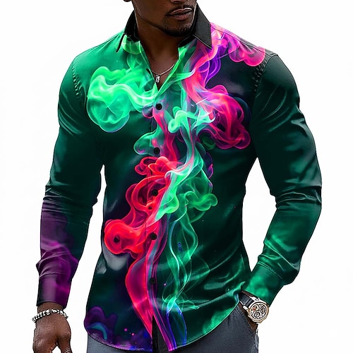 Herren Optische Täuschung Rauch Blende Farbe Hemd Knopfhemd Lässiges Hemd Langarm Modisch lässig Streetwear Urlaub Frühling Herbst Umlegekragen 3D-Druck Hemden mit Kragen Blau Rote Purpur Grün