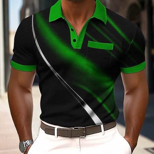 Herren Geometrisch Linie Sport-Poloshirts Kurzarm Polo-Shirts Hemden mit Kragen Lässig Athleisure Alltagskleidung 3D-Druck Knöpfe Sommer Frühling Blau Rote Purpur