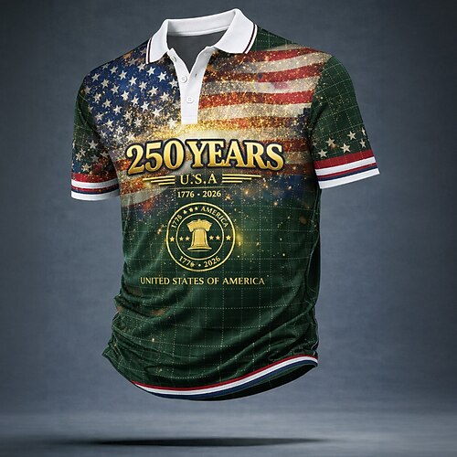 4. Juli 2026 250. Herren Amerikanische US-Flagge Poloshirts Kurzarm Polo-Shirts Revers Lässig Geschäft Athleisure 3D-Druck Knöpfe Frühling Sommer Rote Grün Grau