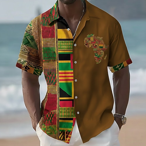 Juneteenth Herren Stammes Karte Ethik / Afrikanisch Hemd Sommerhemd Knopfhemd Kurzarm Vintage-Retro Ferien Sommer Frühling Umlegekragen 3D-Druck Hemden mit Kragen Blau Rote Khaki Schwarz