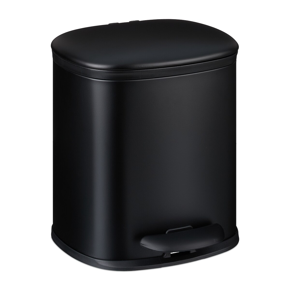 Relaxdays Mülleimer Bad, 5 l, Kosmetikeimer mit Soft-Close, matte Optik, 2 entnehmbare Inneneimer, Treteimer, schwarz