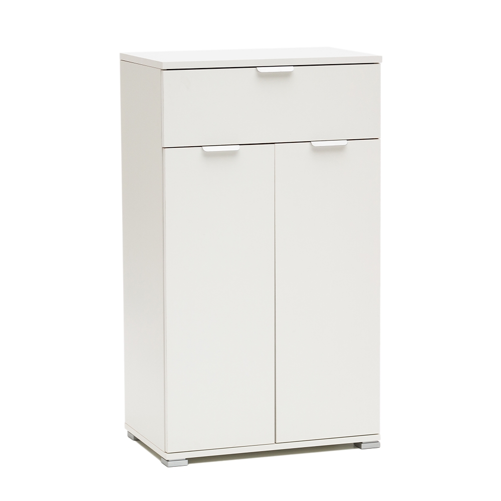 THE WHITE STONE Weißer Schrank 45×85×38 cm mit 2 Türen, Schublade und verstellbaren Fächern, vormontiert für Schlafzimmer, Flur, Bad und Wohnzimmer.