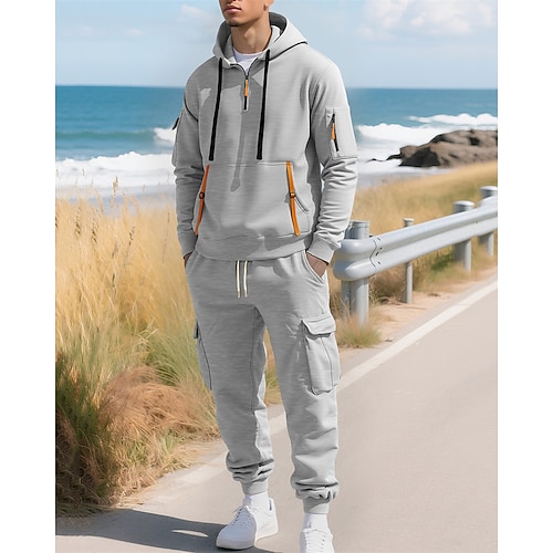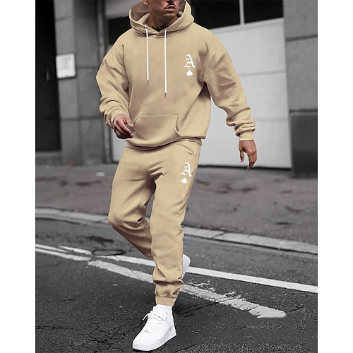 Per uomo Tuta da Ginnastica Set di abiti Set di felpe con cappuccio Felpa con Cappuccio Quotidiano All'aperto Sportivo Coulisse Tasca Lettera a Nero Albicocca Grigio Poliestere Abbigliamento sportivo