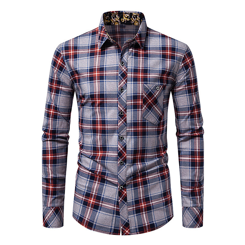 Men's Shirt Summer Shirt Casual Shirt Button Up Shirt Checked Shirts Red Blue Long Sleeve Plaid Lapel Vacation Holiday Button-Down Clothing Apparel Polyester Fashion Casual Comfortable