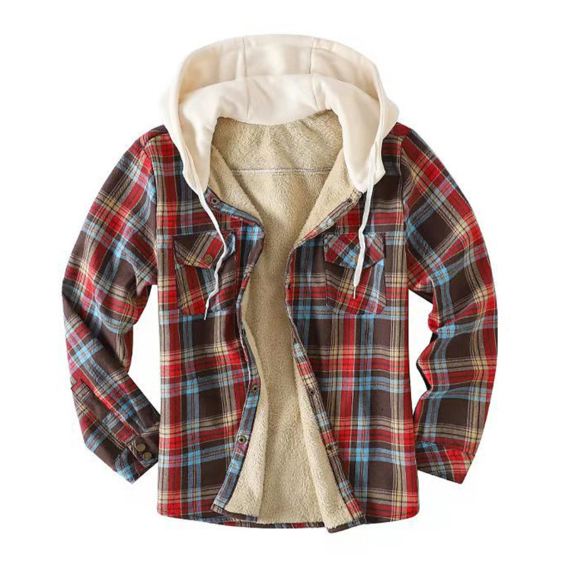 Men's Shacket Shirt Jacket Winter Jacket Plaid Vacation Daily Wear Light Yellow Light Blue Yellow Red Long Sleeve Lapel Fall Winter Clothing Apparel Pocket