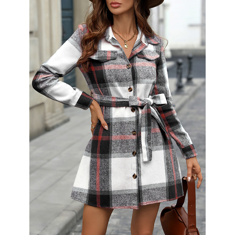 Women's Winter Jacket Shirt Jacket Casual Jacket Comfortable Breathable Pocket Buttons Print Casual Plaid Vacation Street Casual Daily Wear Single Breasted Regular Turndown Regular Fit Long Sleeve