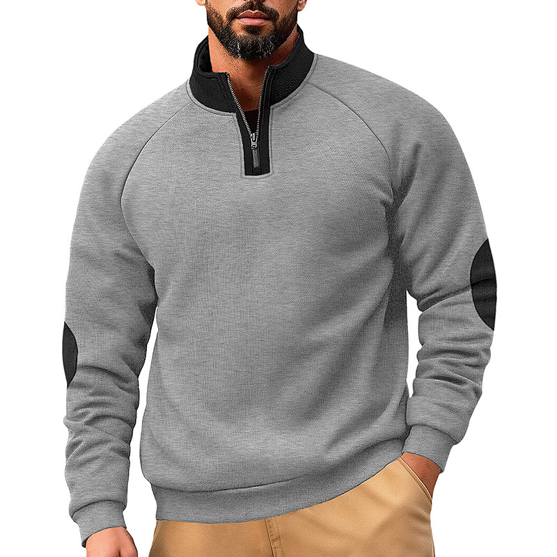 Men's Sweatshirt Pullover Quarter Zip Sweatshirt Black Navy Blue Khaki Light Grey Dark Gray Standing Collar Plain Patchwork Color Block Sports Outdoor Casual Daily Streetwear Cool Sportswear Spring