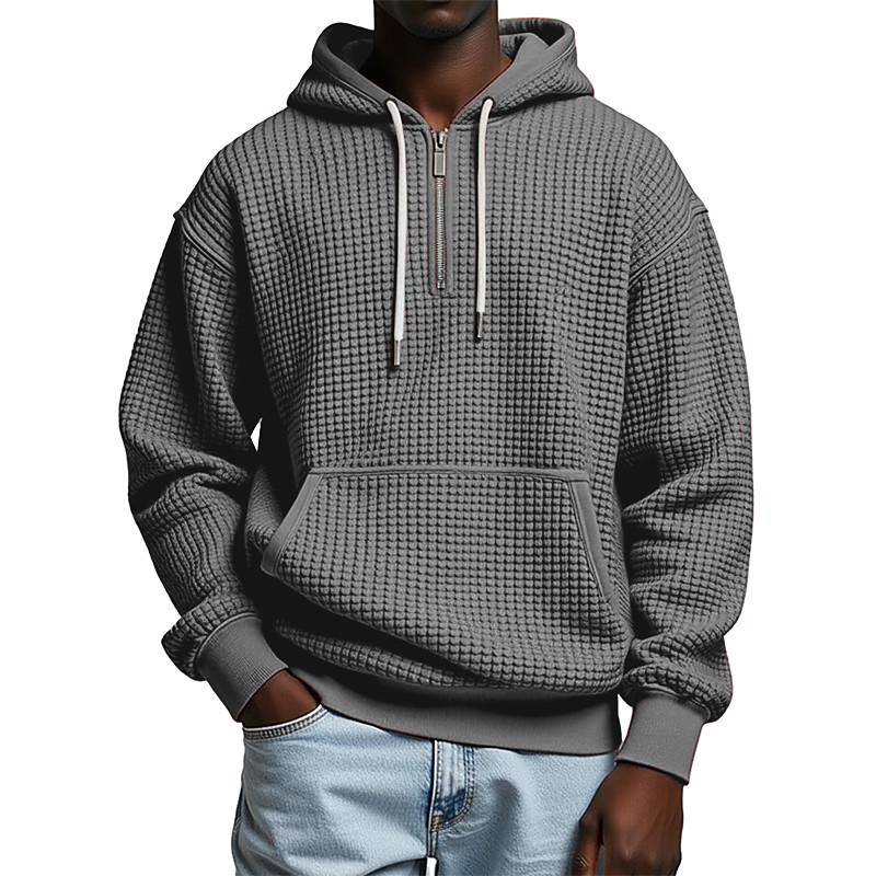 Men's Hoodie Full Zip Hoodie Waffle Hoodies Apricot Black White Light Green Army Green Hooded Plain Textured Sports Outdoor Casual Daily Streetwear Cool Sportswear Spring Fall Fall Winter