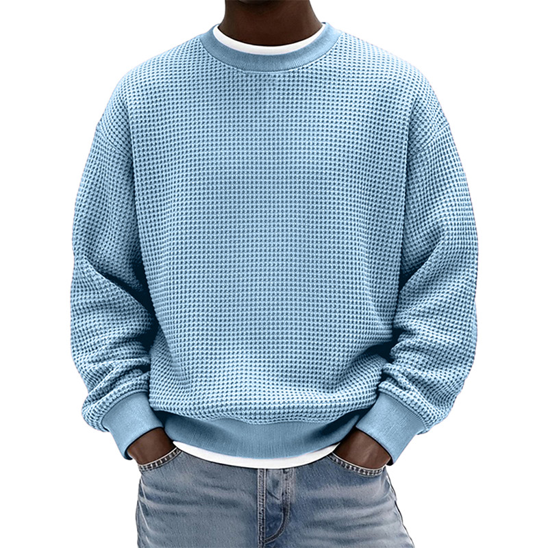 Men's Sweatshirt Waffle Sweatshirt Pullover Hoodie Sweatshirt Wine Red Black White Light Green Navy Blue Crew Neck Plain Textured Casual Daily Sports Outdoor Streetwear Cool Sportswear Spring