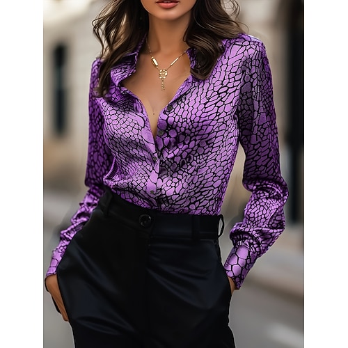Per donna Camicia da lavoro Grafico Leopardo Elegante Casual Manica Lunga Colletto a Camicia Top Regolari Lavoro Abbigliamento da sera Quotidiano Rosa Blu Viola Marrone Grigio Estate Autunno Inverno