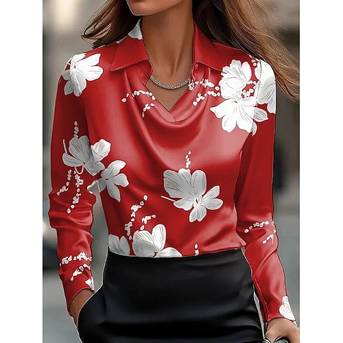 Camicia da donna Elegante Top Formale Camicia da lavoro Grafica Floreale Elegante Stile Casual Manica Lunga Collo Cavallo Top Regolari Lavoro Feste Sera Abbigliamento Quotidiano Arricciato