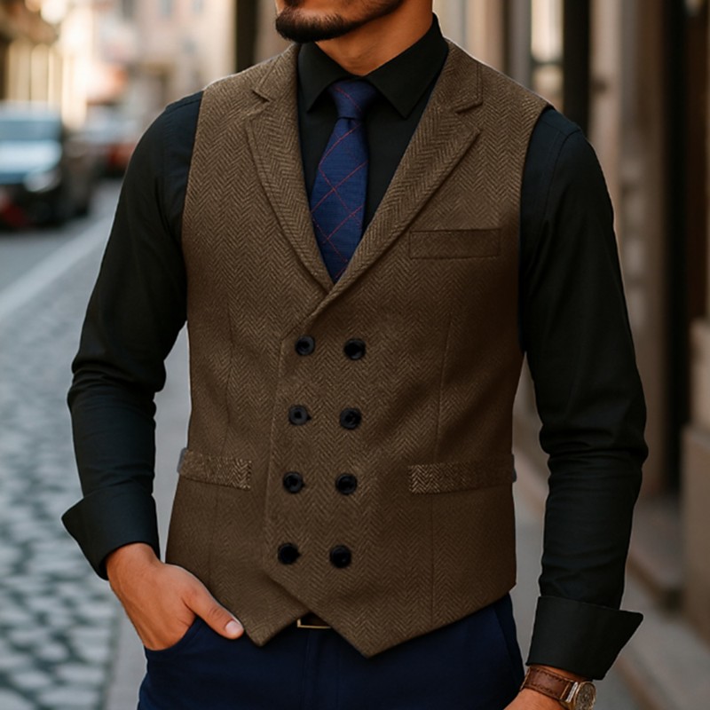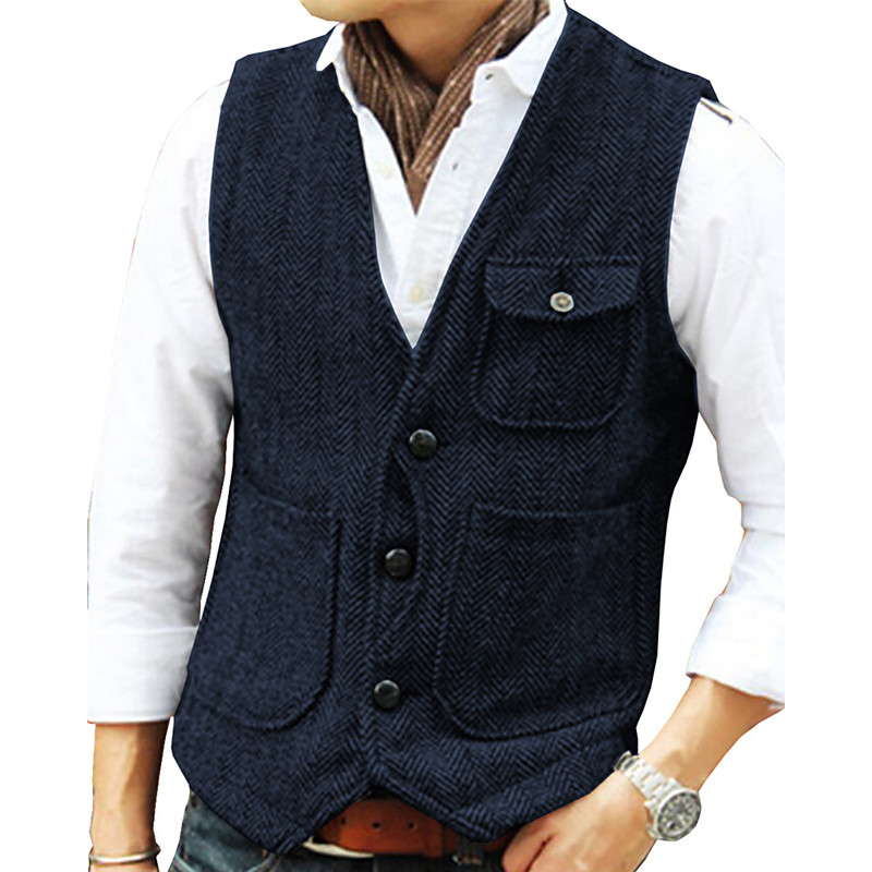 Men's Vest Tweed Vest Waistcoat Vacation Daily Wedding Party Date Vintage Fashion Spring Fall Pocket Buttons Polyester Comfortable Plain Herringbone Double Breasted Notch lapel collar Regular Fit