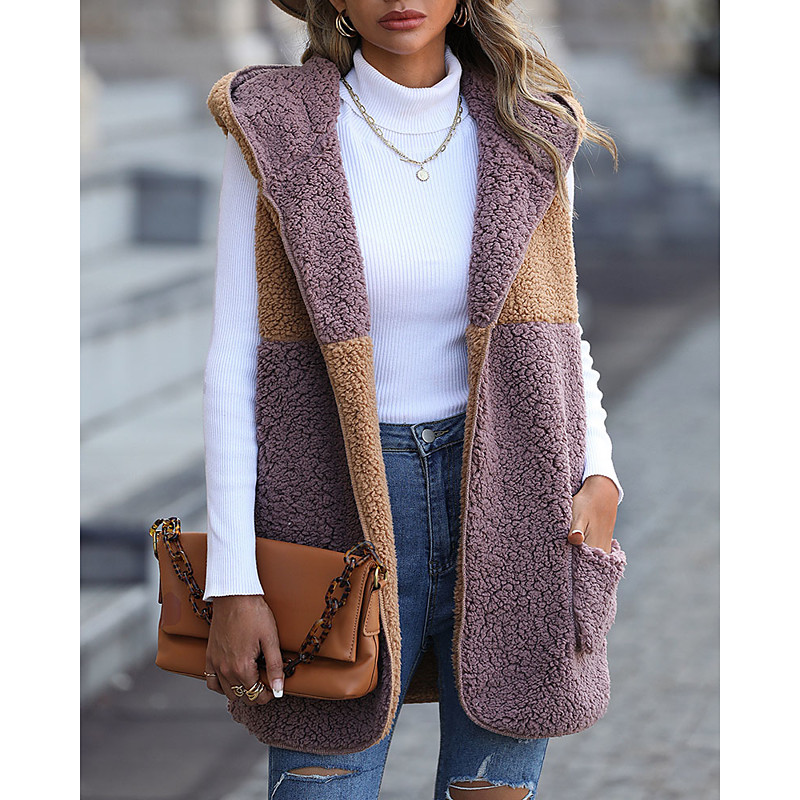 Women's Winter Coat Fleece Vest Vest Warm Comfortable Patchwork Pocket Fashion Casual Solid Color Vacation Street Casual Daily Wear Regular Hooded Regular Fit Sleeveless Outerwear Purple Fall Winter