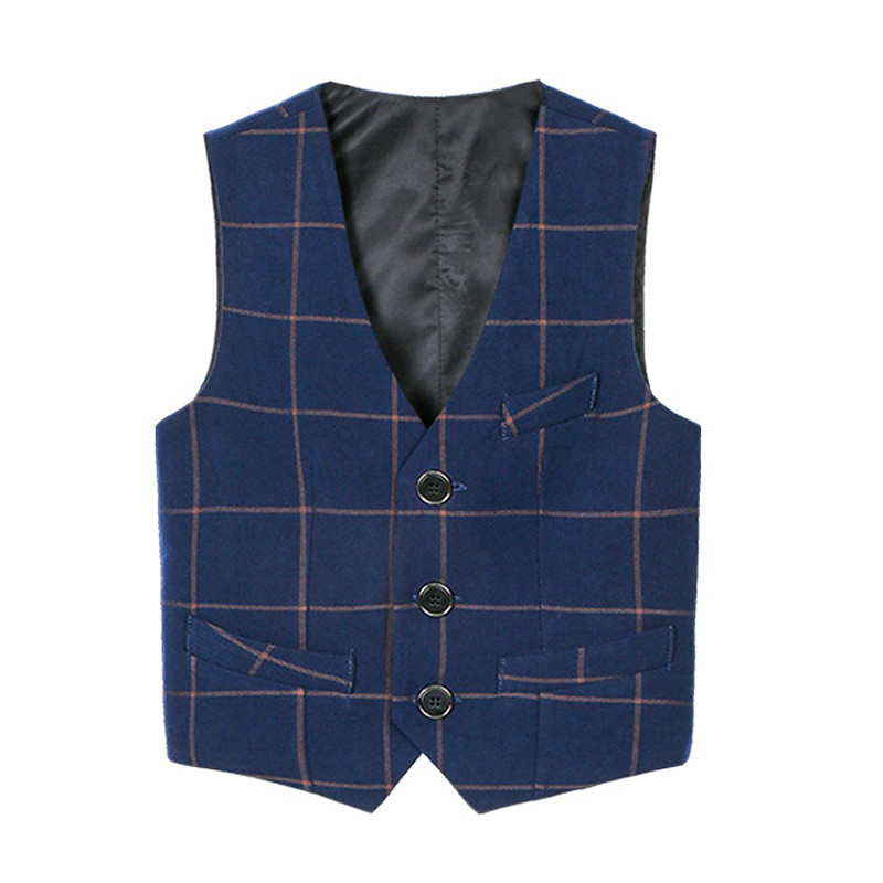 Kids Boys' Vest Coat Outerwear Plaid Sleeveless Pocket V Neck Buttons Coat Outdoor Fashion Cool Daily Blue Black Navy Blue Spring Fall 4-12 Years