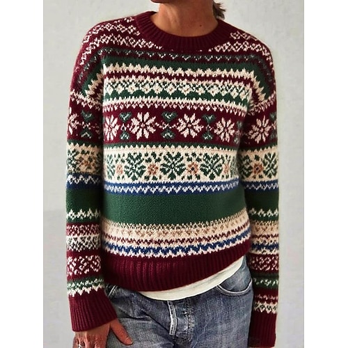 Per donna Maglione natalizio Fair Isle Felpa Maglione Quotidiano Casual Floreale A Coste Girocollo Lavorato a maglia Stampato Manica Lunga Top Regolari Maglia All'aperto Weekend Vino Autunno Inverno