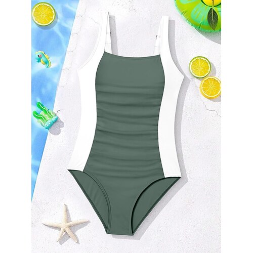 Bambini Ragazze Costume da bagno All'aperto Spiaggia Blocco di colori Vacanza Moda Patchwork Costumi da bagno Dai 4 anni in su Estate Blu Nero