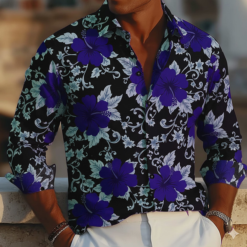Men's Floral Print Flowers Shirt Button Up Shirt Long Sleeve Fashion Casual Holiday Casual Daily Spring Fall Turndown 3D Print Collared Shirts Purple Green Rose Red