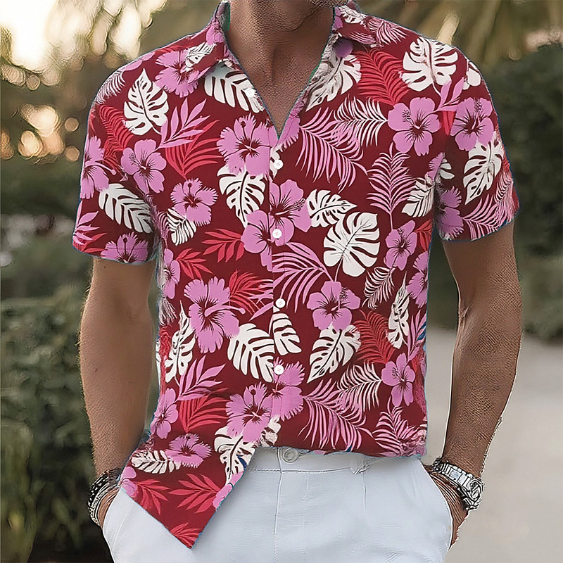 Men's Shirt Summer Shirt Button Up Shirt Black White Red Blue Green Short Sleeve Plain Collar 3D Print Outdoor Casual Clothing Apparel Casual Slim Fit