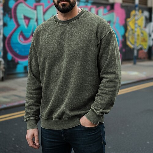 Per uomo Maglia Felpa con cappuccio invecchiata Aalbicocca Nero Rosa Verde militare Marrone Girocollo Semplice Quotidiano Ferie Uscire 100% Cotone Vintage Retrò Casual Autunno Inverno Abbigliamento