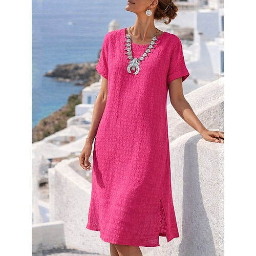 Per donna Mini Abito Abiti in cotone e lino Abito a Tubino Vestito Casual Moda Essenziale Moderno Manica del polsino svasato Quotidiano All'aperto Vacanza Vestibilità regolare Vestibilità comoda