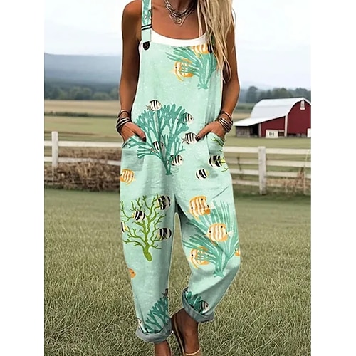 Per donna Salopette Attivo Floreale Senza Maniche Dritto con tasca Quotidiano Vacanza Vestibilità comoda Blu Giallo Rosso Estate