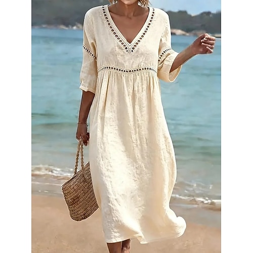 Per donna Abito maxi 100% cotone Vestito a caftano Vestito Casual Essenziale Moderno Quotidiano Weekend Vestibilità comoda Semplice Mezza Manica Scollo a V Nero Blu marino Marrone Verde Estate