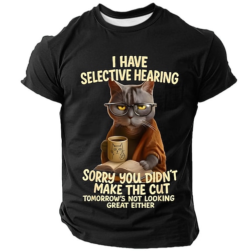 T-Shirt Grafica per Uomini Divertente Citazione Sarcastica del Gatto 'Ascolto Selettivo' Maniche Corte. Ottima per Umorismo di Stile di Vita e Atteggiamento.