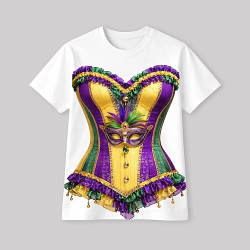 Stampa Martedì Grasso 2026 Corte T-shirt Grafico per Per donna Adulti Stampa 3D per Carnevale martedì grasso Club Festival