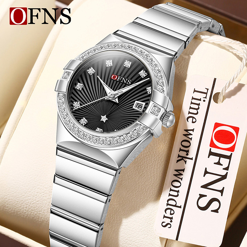 OFNS Brand Kid's Women Quartz Watch Fashion Rhinestone Casual Wristwatch Luminous Calendar Date Waterproof Stainless Steel Strap Watch