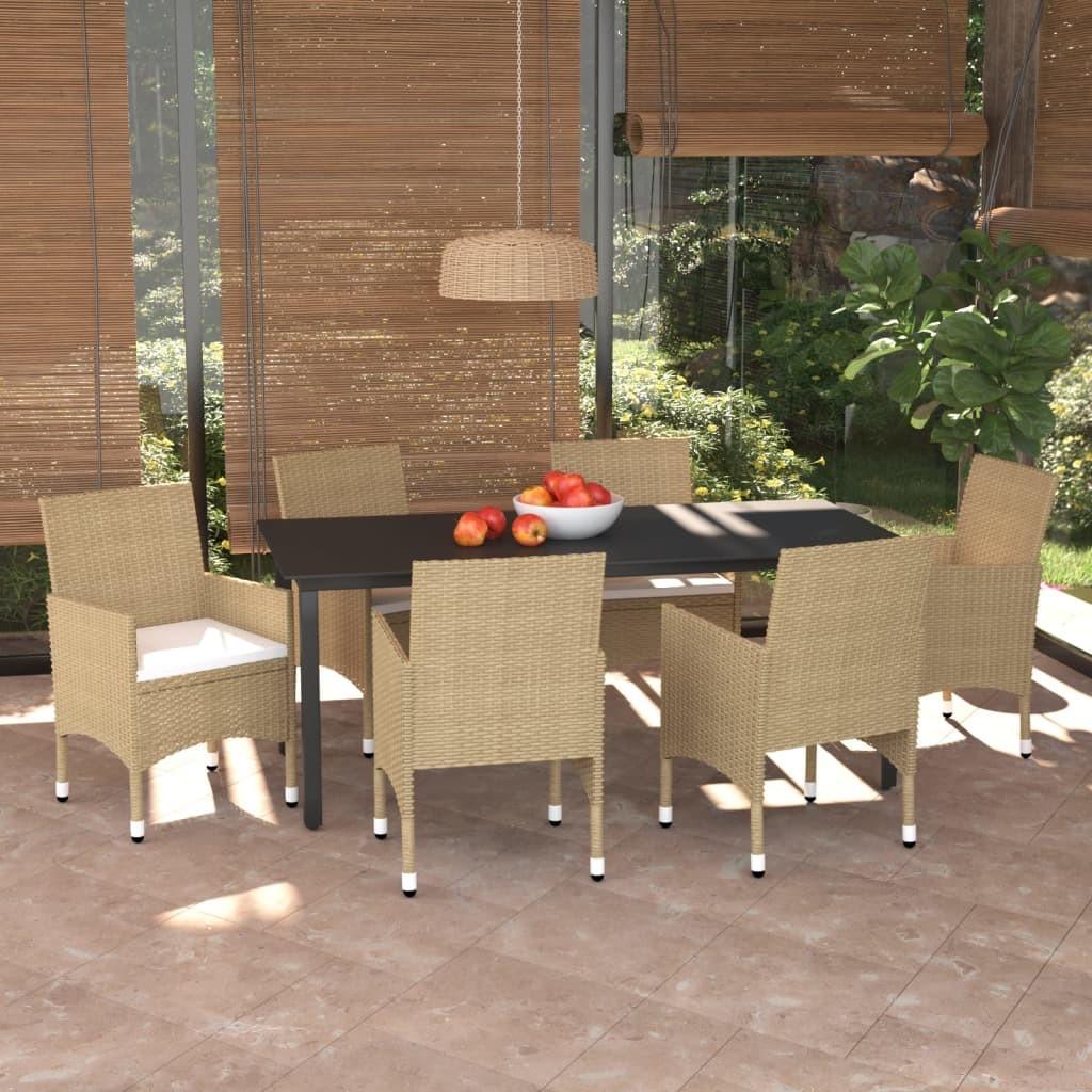 Sofasæt til haven 7 dele med hynder polyrattan beige