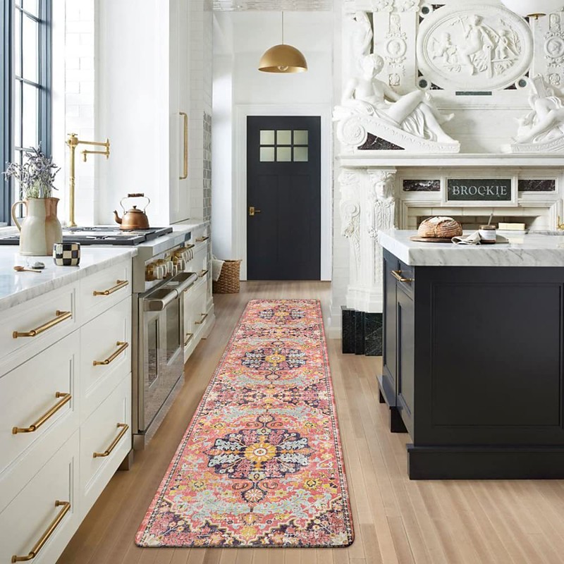 Runner Rugs For Hallway Kitchen Persian Style Crystal Velvet Absorbent Floor Mat For Sink Laundry Room Hallway Durable Rubber Backed Soft Non-Slip Machine Washable Rug