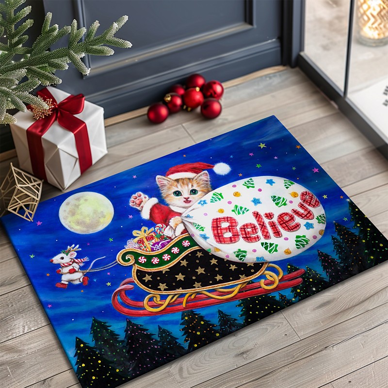 Christmas Doormat For Entryway Soft Non-Slip Machine Washable Faux Cashmere Front Door Mat Festive Entryway Rug , Believe and CandySleigh by Kayomi Harai