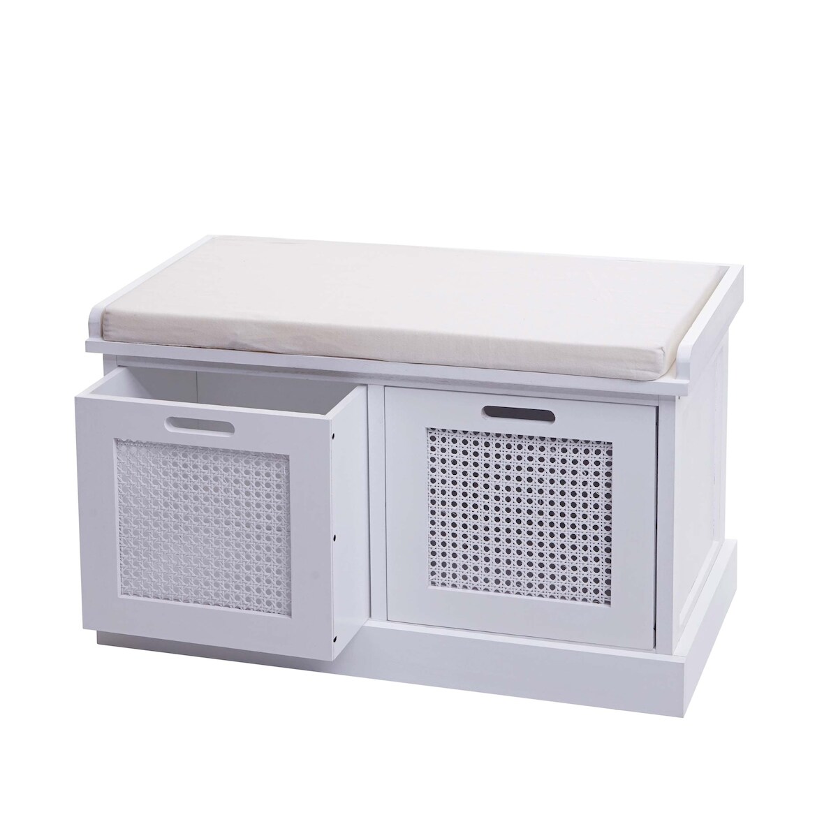 Mendler Sitzbank HWC-J49, Polsterbank Garderobenbank, Kissen Aufbewahrungsboxen Staufach 47x75x40cm ~ weiß, Polster creme-weiß