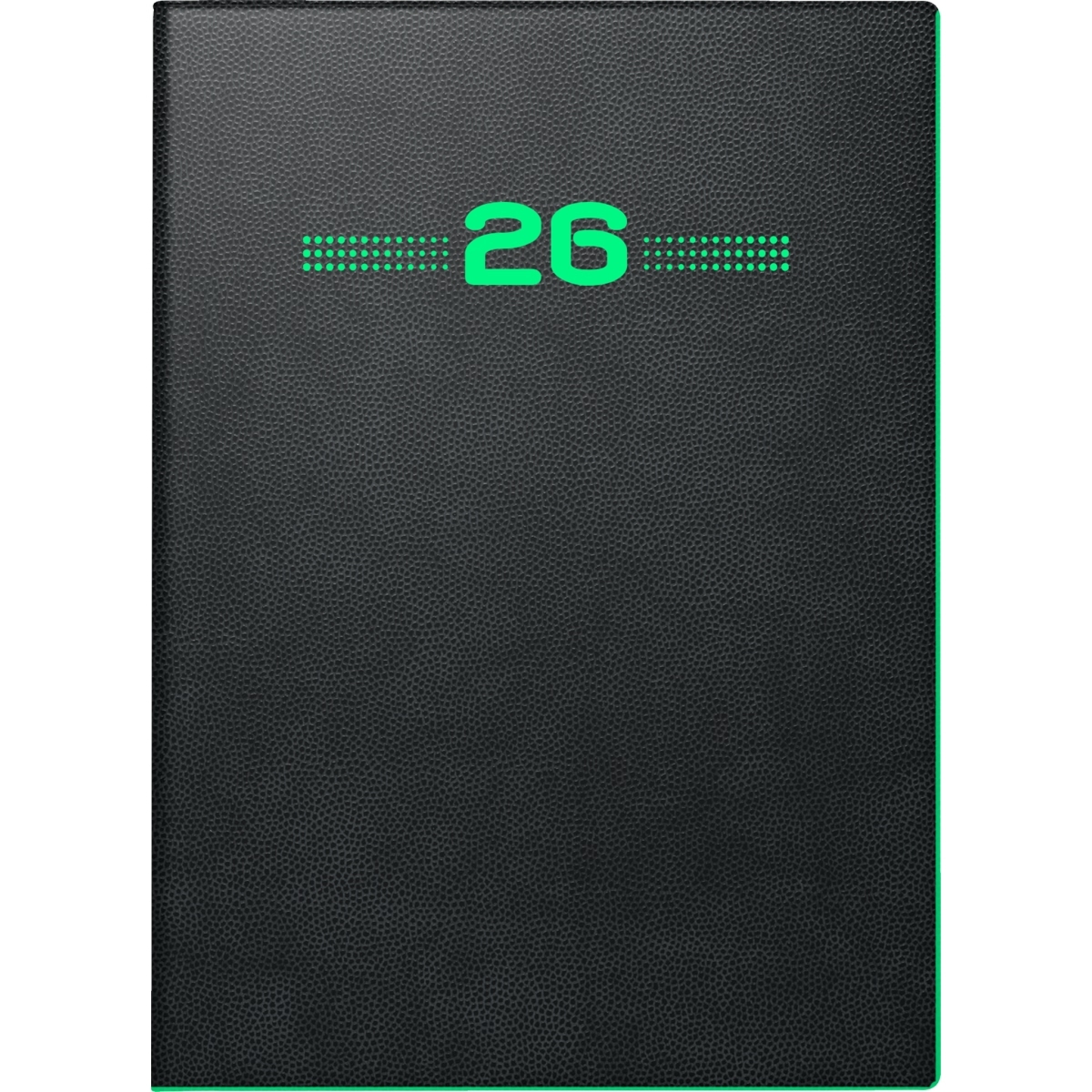 Brunnen Taschenkalender 736 10x14cm 1 Tag/Seite PU-Einband flexibel Neon schwarz 2026.