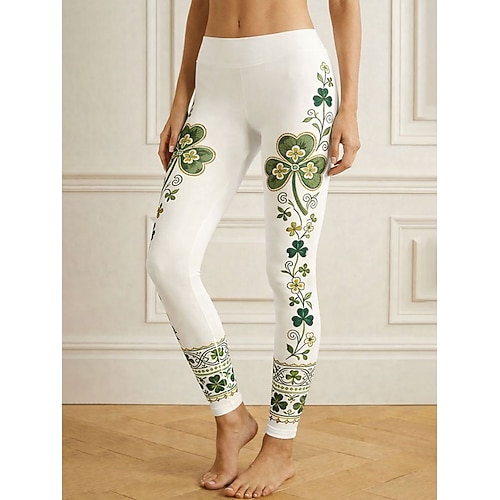 Damen Leggings Urlaub Basic Lässig Volle Länge Hohe TaillePantsSt. Patrick Tag Grafik Farbverlauf Kleeblatt Komfort Weich Bequem Dehnbar Täglich Outdoor Urlaub Weiß Grün Sommer Frühling Herbst Winter