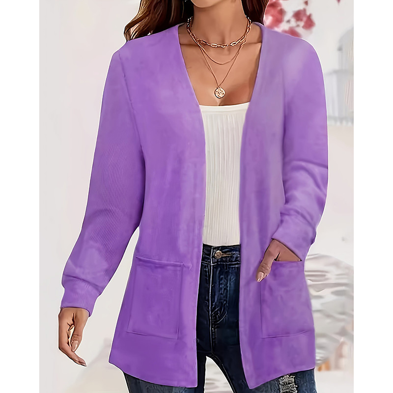 Women's Sweater Cardigan Elegant Streetwear Casual Solid Color V Neck Pocket Knitted Long Sleeve Long Tops Knit Daily Holiday Going out Black Pink Fall Winter