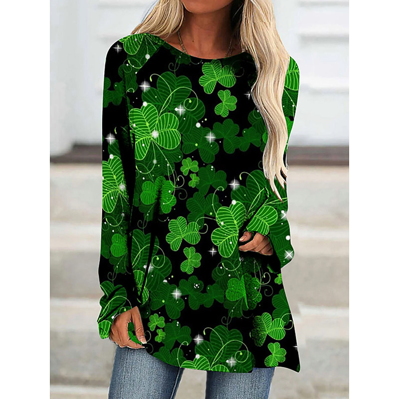 St. Patrick's Day Women's T Shirt Graphic Shamrock Vintage Stylish Classic Long Sleeve Crew Neck Round Neck Long Tops Daily Print Black Green Spring Fall