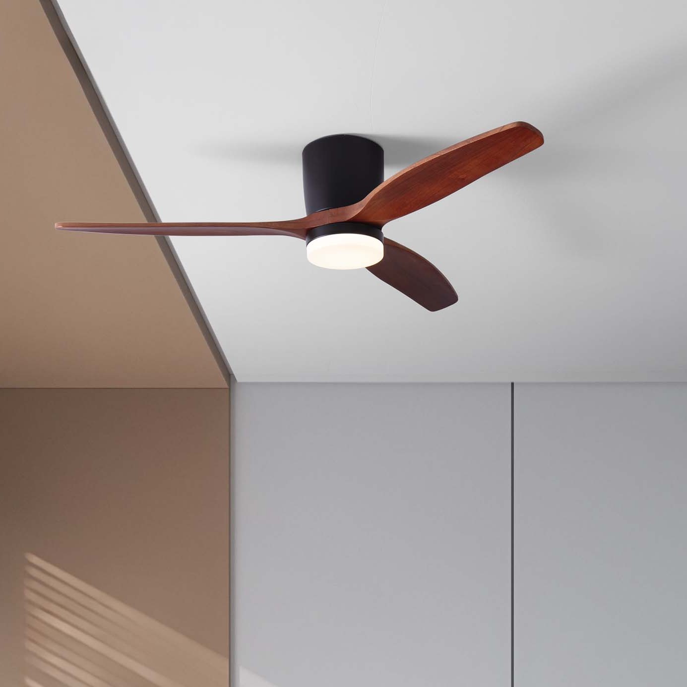 Nova Luce Aloa - ventilateur de plafond avec lumière et télécommande - Ø 132 x 27,5 cm - 18W LED inclus - noir sablé et bois foncé