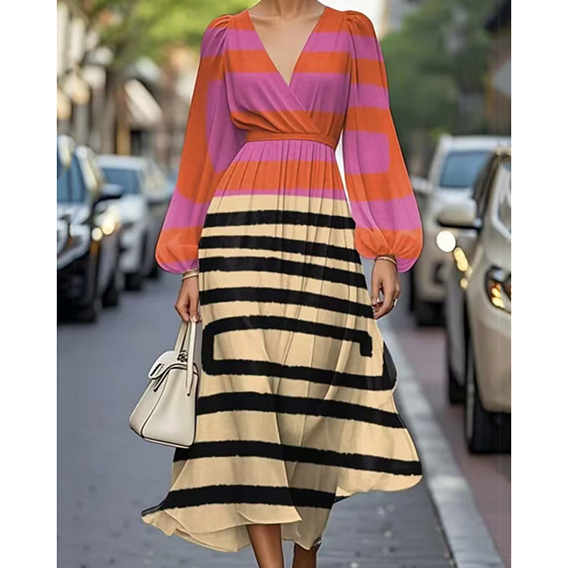Women's Midi Dress Black Dress Party Dress Casual Dress Cocktail Dress Elegant Fashion Modern Outdoor Party Daily Slim Color Block Long Sleeve V Neck Black and white stripes Black White Pink Spring