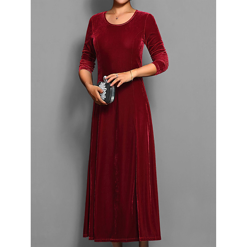 Christmas Women's Velvet Midi Dress Sheath Dress A Line Dress Fit And Flare Dress Party Birthday Cocktail Party Wedding Guest Birthday Plain Long Sleeve Crew Neck Black Blue Green Spring Fall Winter