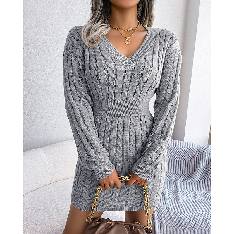 Women's Mini Dress Sweater Dress Bodycon Sheath Dress Fashion Modern Vacation Holiday Weekend Regular Fit Plain Long Sleeve V Neck Black White Blue Brown Spring Fall