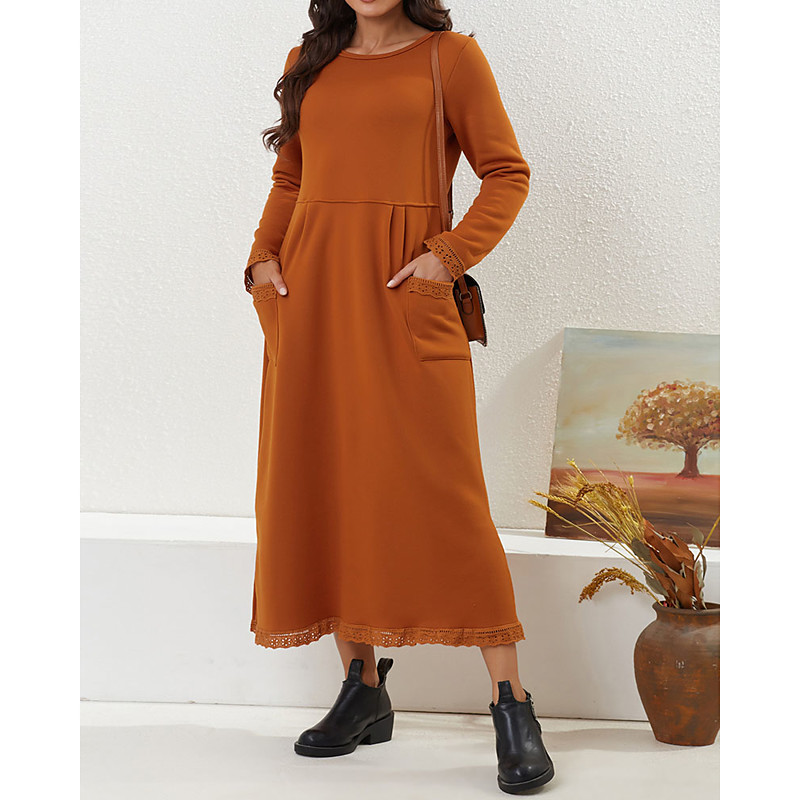 Women's Midi Dress Hoodie Dress Fashion Modern Office Daily Going out Regular Fit Plain Long Sleeve Crew Neck Black Wine Orange Dark Gray Spring Fall Winter