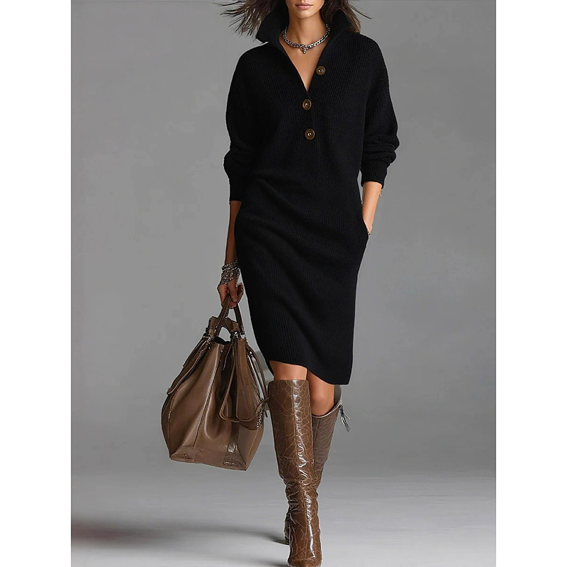 Women's Midi Dress Sweater Dress Sheath Dress Shift Dress Party Formal Semi Formal Formal Christmas Outdoor Loose Fit Plain Long Sleeve Lapel Black Yellow Red Brown Spring Fall Winter
