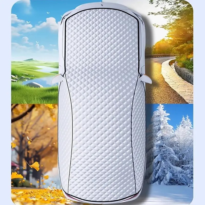 Winter Car Windshield Cover, Snow Frost Guard Ice Protector, Dustproof and Heat-Resistant Sunshade, Easy to Install Flexible Windshield Cover for Most Vehicles, White Winter Auto Accessory