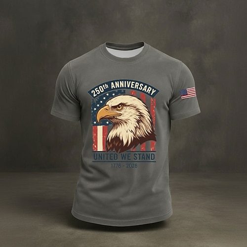 Amerikas 250. Jahrestag Herren Grafik Amerikanische US-Flagge Adler T Shirt Kurzarmshirt T-Shirt Kurzarm T-Shirt 3D-Druck Rundhalsausschnitt Hemd Mode Täglich Basic Täglich Urlaub Straße Burgunderrot
