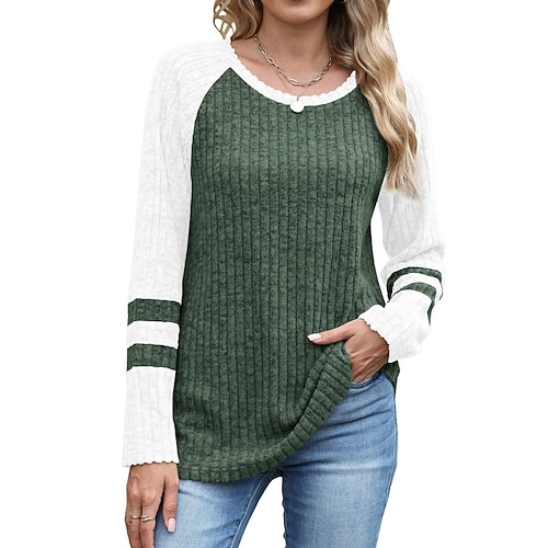 Per donna Blusa Blocco di colori Elegante Casual Manica Lunga Girocollo Top Regolari Quotidiano Patchwork Blu Nero Viola Marrone Verde Primavera Autunno Inverno